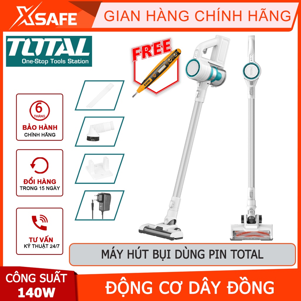 Thiết Bị Điện Gia Dụng > Thiết bị điện gia dụng nhỏ > Máy hút bụi & Thiết bị làm sạch sàn || Máy hút bụi dùng pin TOTAL TVCH14111 22.2V, công suất 140W, kèm 1 ống kim loại, sạc và móc nhựa, vòi phun, bàn chải sofaCòn hàng