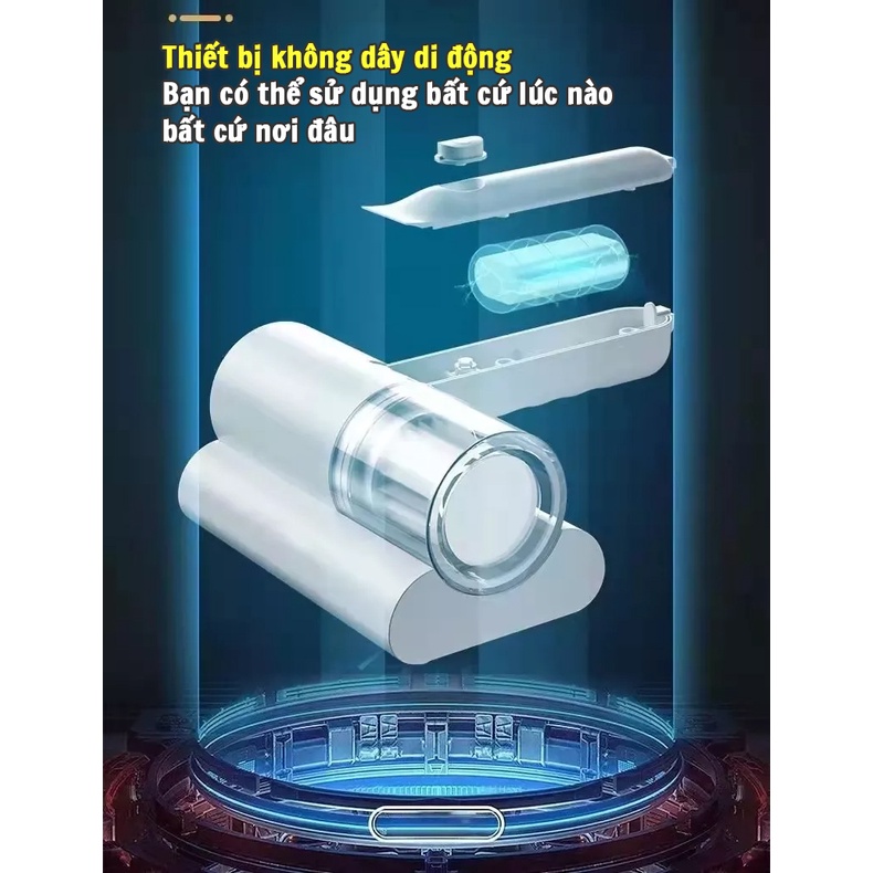 Máy hút bụi giường nệm cầm tay, máy hút bụi không dây diệt khuẩn tia UV lực hút lên đến 12000PA bảo hành 1 đổi 1