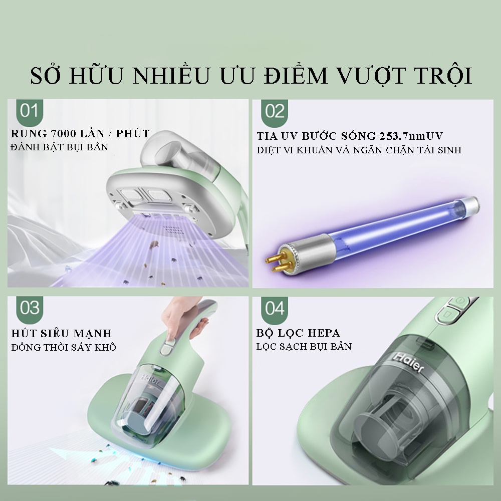 Máy hút bụi giường nệm HAIER - Loại bỏ 99% vi khuẩn,khử trùng bằng tia UV - Công nghệ diệt khuẩn hiện đại đến từ Đức