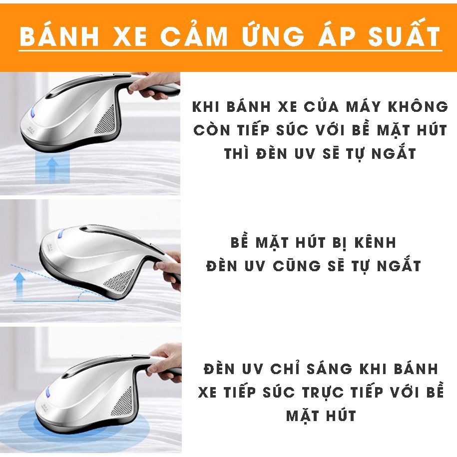 -Lực hút mạnh, bề mặt hút rộng với thiết kế hệ thống quang nhiệt PTC nóng 55 độ C cùng tia UV hoạt động rung với tần số cao (8000lần/phút) nhằm ức chế các loại vi khuẩn, bọ chét bám trên từng thớ vải, làm khô nhanh chóng bề mặt, hạn chế phát sinh vi khuẩn ở một khoảng thời gian sau đó.