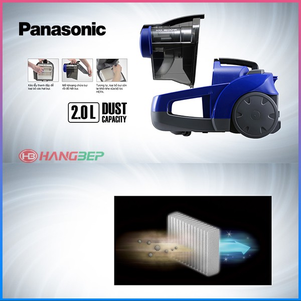 - Máy hút bụi khô Panasonic MC-CL561AN46 chính hãng không túi- Khoang bụi chứa được 2 lít bụi có tháo rời để vệ sinh dễ dàng 1 phút