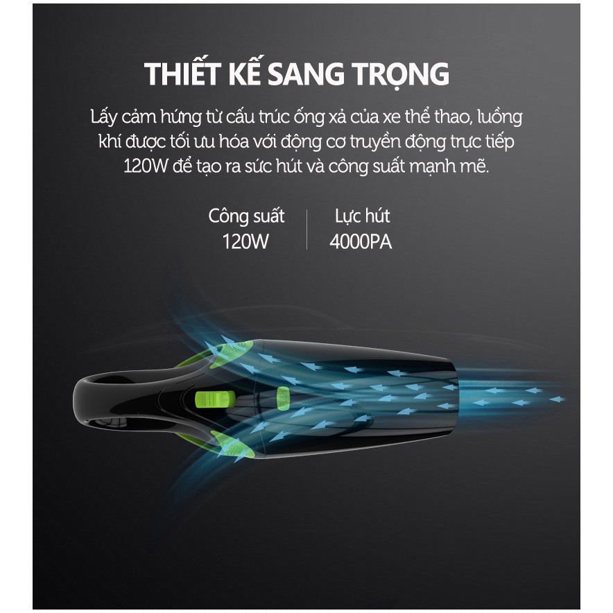- Công suất mạnh mẽ 120W, lực hút 4000kpa kết hợp với nhiều loại đầu hút khác nhau giúp cho việc hút bụi từ những ngóc ngách khó xử lý nhất trở nên dễ dàng, nhanh chóng và tiết kiệm thời gian tối đa. Ngoài ra tay cầm còn được tối ưu giúp bạn làm việc trong thời gian dài mà không cảm thấy mỏi tay.