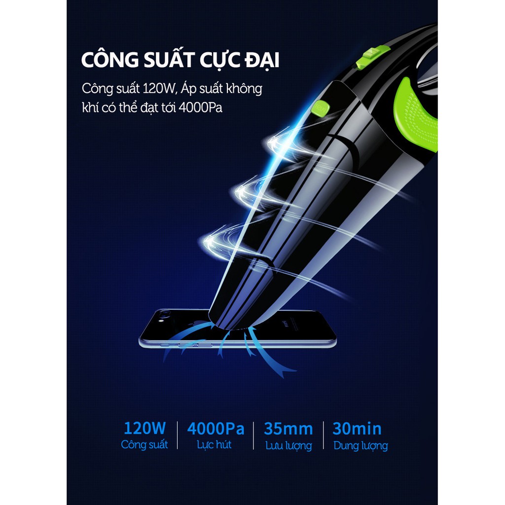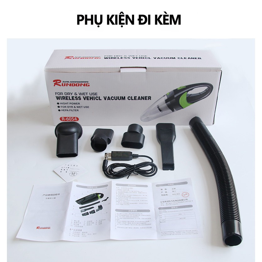 Máy Hút Bụi Cầm Tay Mini Cho Gia Đình Và Xe Hơi R6054 - Lực hút mạnh mẽ 4000Pa - Pin dung lượng lớn 2700mAh - Công suất 120W - Hộp bụi 400ml - Có thể hút khô và nước - Màng lọc Hepa có thể rửa sạchĐẶC ĐIỂM NỔI BẬT :