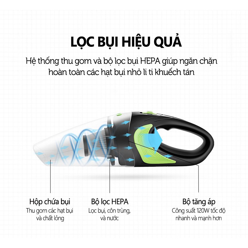 - Máy hút bụi không dây giúp hút sạch bụi bẩn tại mọi vị trí trên xe, mọi ngóc ngách của gia đình giữ cho xe hơi cũng như căn phòng của luôn được đảm bảo vệ sinh, giúp cải thiện sức khỏe cho bạn và người thân.