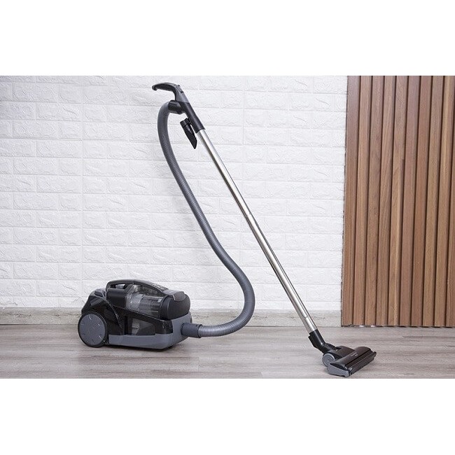 - Máy hút bụi Panasonic màu xám đen sang trọng, kiểu dáng gọn chắc, dễ dàng di chuyển đến mọi vị trí trong nhà