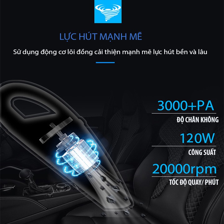 Máy hút bụi mạnh mẽ ướt và khô với máy hút bụi cầm tay không dây bộ sạc USBThiết kế sang trọng tinh tế, Sức hút mạnh mẽ (3000PA)