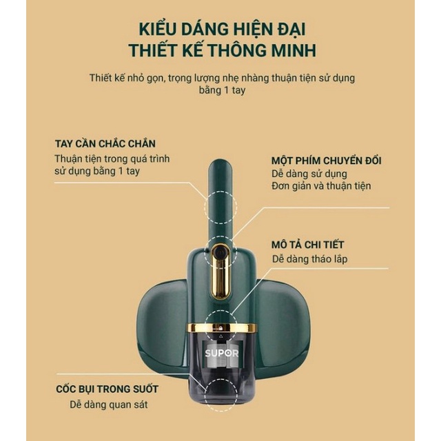 Máy Hút Bụi Mịn SUPOR VCM16A Đa Chức Năng Có Đèn Tia UV Sát Khuẩn Diệt Bọ Li Ti - Home and Garden