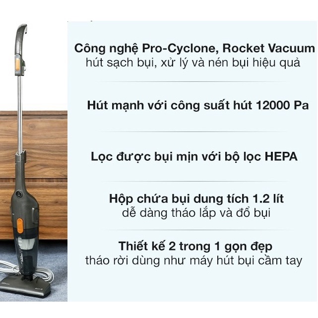 - Công nghệ hút xoáy Pro-Cyclone, Rocket Vacuum tăng hiệu quả hút bụi, bảo vệ tốt cho bộ lọc
