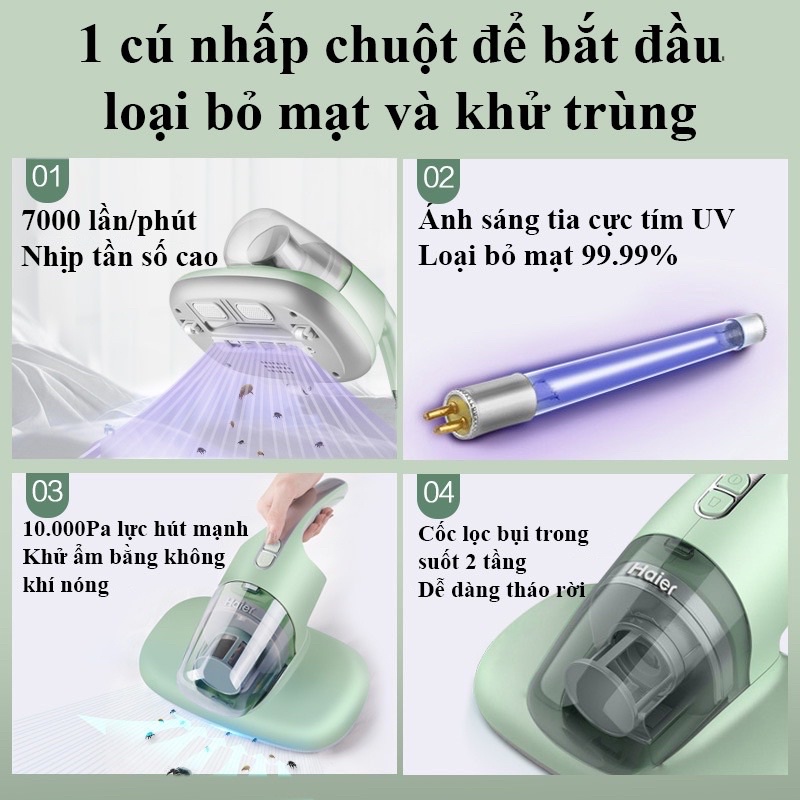 📢📢📢 Máy Hút Bụi Haier Giường Nệm Sofa Diệt Khuẩn, Máy hút bụi diệt khuẩn UV hút bụi gối đệm giường, Vệ Sinh Giường Nệm 📢📢📢✔️ Bạn có thể biết việc vệ sinh chăn gối, ga, nêm, sai cách sẽ khiển nguy cơ bệnh tật tăng cao ( đặt biệt các vấn đề về da và đường hô hấp). Bởi vi sinh vật ở ga trải giường sẽ ảnh hưởng đền sức khỏe, đó không phải là vi khuẩn hay vi rút mà là bụi sán. Bụi sán sẽ gay ra viêm mũ và hen suyễn do dị ứng. Chúng còn có thể là tác nhận gây viêm xoang.