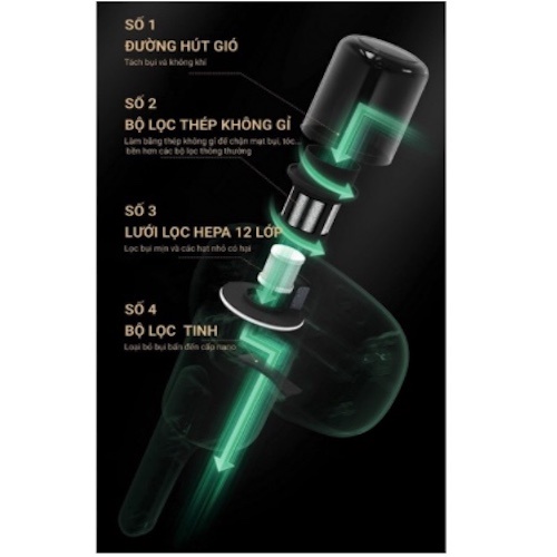 - Khay chứa bụi của máy hút bụi cầm tay diệt khuẩn có tia UV lớn và dể dàng thao tác khi lấy bụi ra chỉ với 1 nút nhấn, không sử dụng túi bụi, chỉ sử dụng túi lọc bụi vào máy.