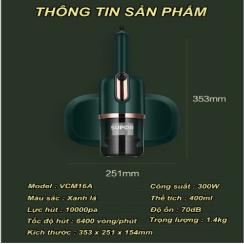 Giới thiệu Máy Hút Bụi Siêu Mịn SUPOR VCM16A Đa Chức Năng Có Đèn Tia UV Sát Khuẩn Diệt Bọ