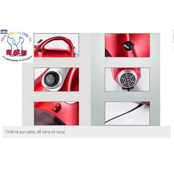 -Đồng thời máy có chức năng thổi gió, nóng, thích hợp cho việc sấy lông chó sau khi tắm.