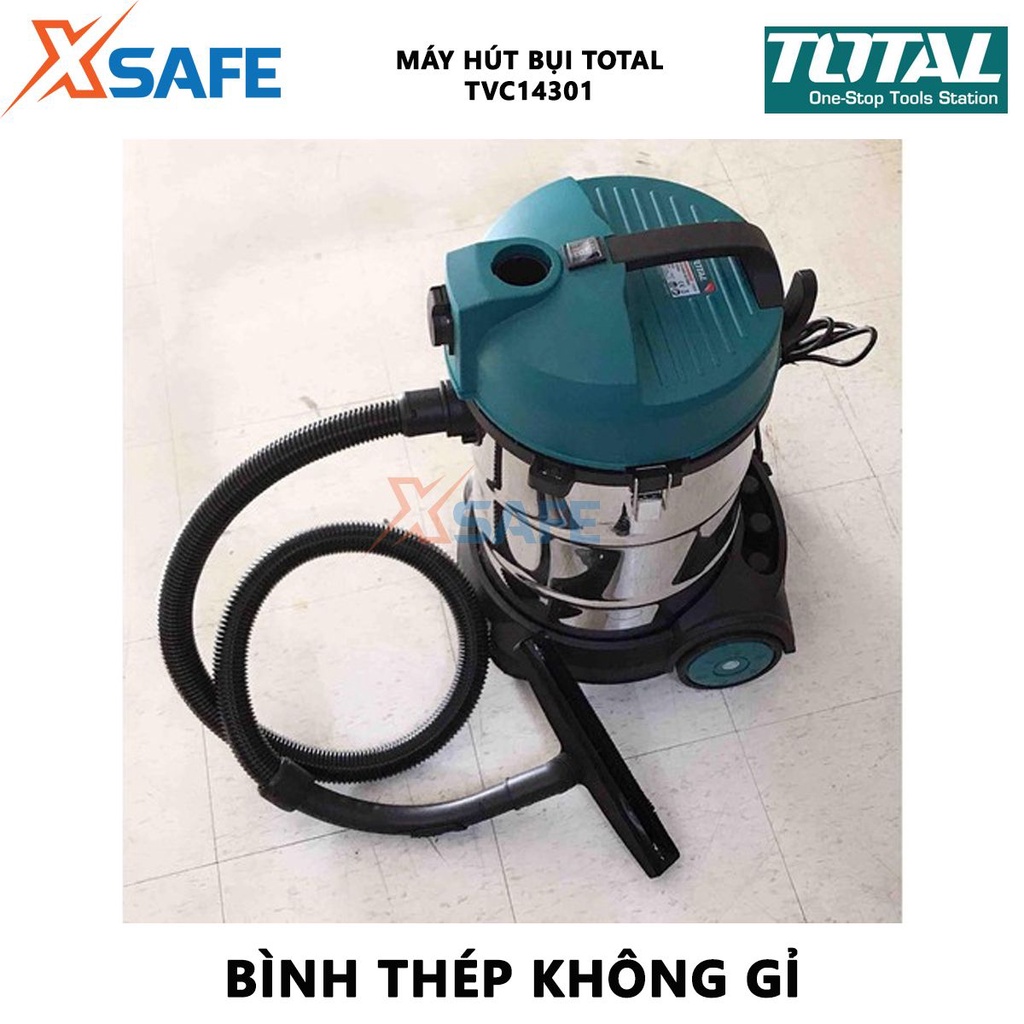 Thiết Bị Điện Gia Dụng > Thiết bị điện gia dụng nhỏ > Máy hút bụi & Thiết bị làm sạch sàn || Máy hút bụi TOTAL TVC14301 1400W hút bụi khô và ướt, dung tích 30L, bình chứa thép không gỉ, dây cáp nguồn 2.3m - XSAFECòn hàng