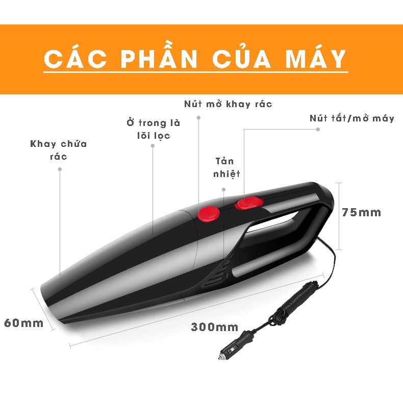 🍒🍒THÔNG TIN SẢN PHẨM:-Sản phẩm gồm: 1 Máy có dây chỉ dùng trên ô tô + 3 đầu hút
