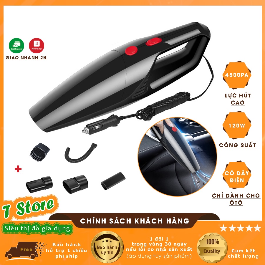 Máy Hút Bụi Xe Hơi Cầm Tay Mini Có Dây 3 Đầu, Lực Hút Mạnh 4500PA - 120W Chỉ Dành Cho Ô Tô