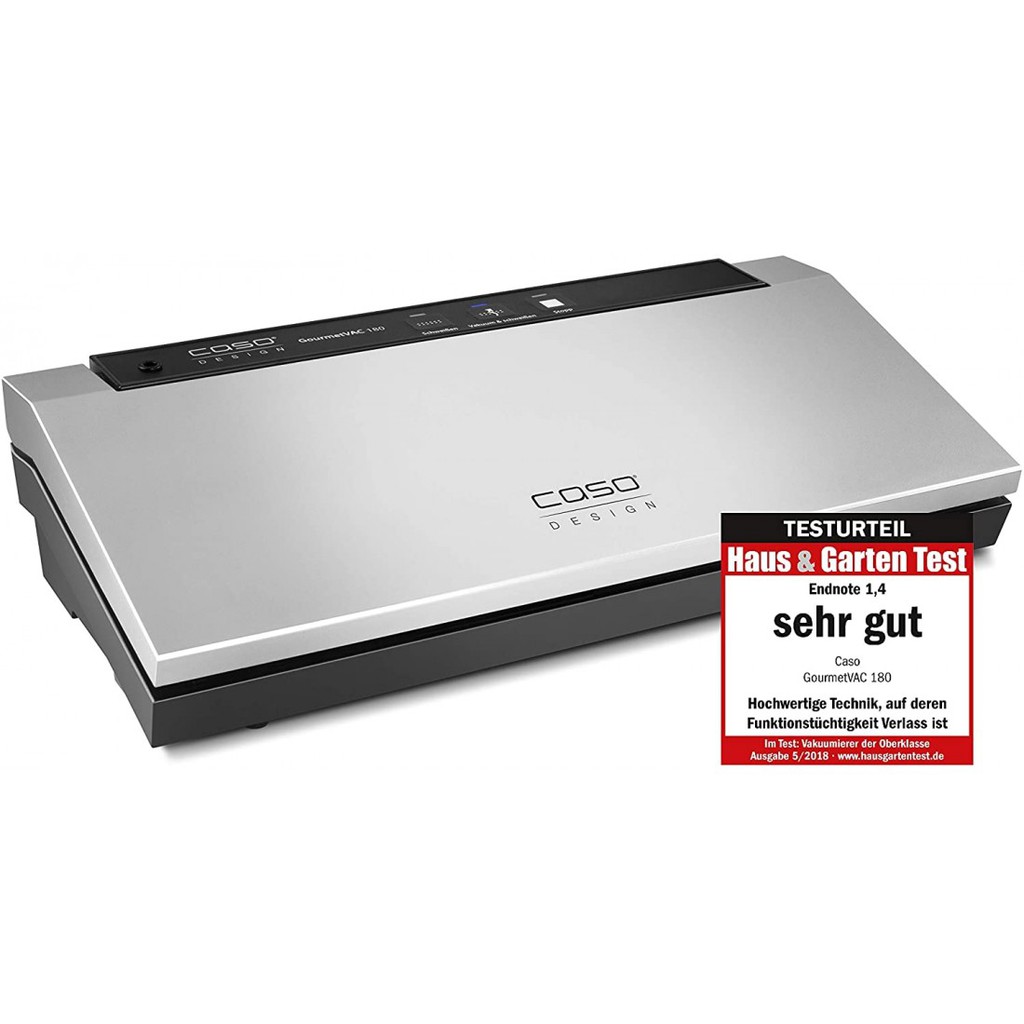 MÁY HÚT CHÂN KHÔNG CASO GOURMETVAC 180- Máy hút chân không Caso GourmetVAC 180 giúp bảo quản thực phẩm tươi lâu gấp 8 lần so với phương pháp thông thường. Thực phẩm, nguyên liệu nấu ăn, hoa quả… được bảo quản trong thời gian lâu hơn, tươi ngon như lúc mới mua, giữ nguyên màu sắc, hương vị và vitamin dưỡng chất mà không cần dùng chất bảo quản.