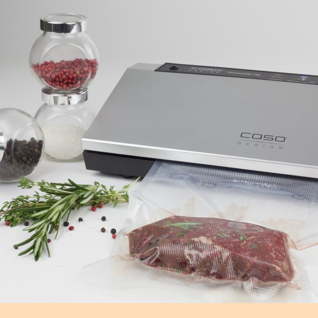 ✔️Máy hút chân không Caso Gourmet VAC 180 đi kèm 10 túi đựng thực phẩm (20 x 30 cm) sử dụng an toàn được cả trong lò vi sóng.