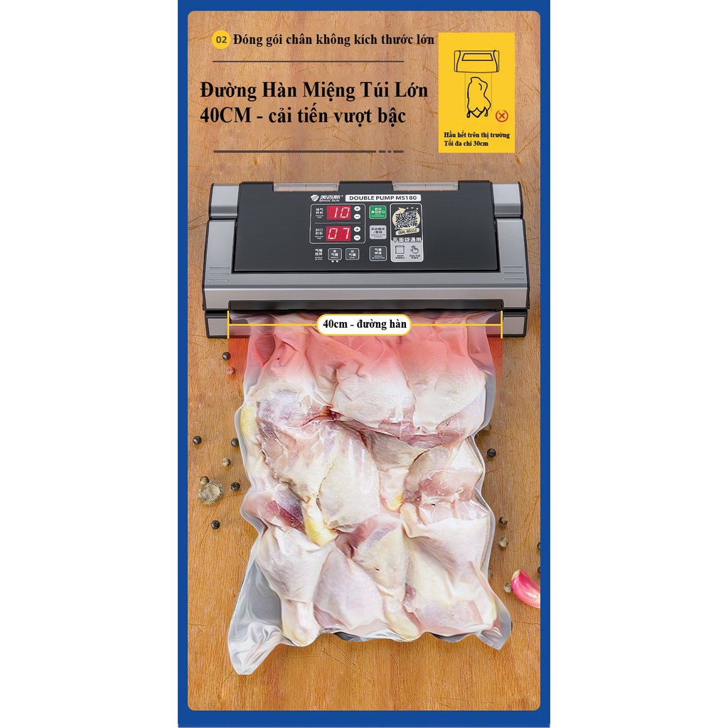 Nhà cửa & Đời sống > Dụng cụ nhà bếp > Dụng cụ hút chân không || Máy Hút Chân Không Magic Seal MS180 không kén túi, hút 2 vòi cùng lúc, tự đồng và bán tự động, hàng chính hãngCòn hàng