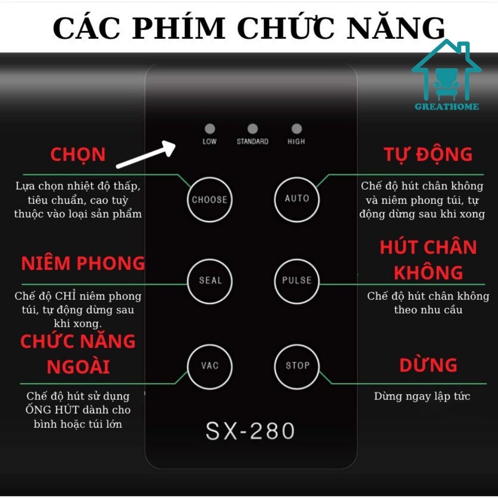 - Máy hút chân không thực phẩm có 6 nút chức năng, tuỳ thuộc vào nhiều nhu cầu khác nhau.