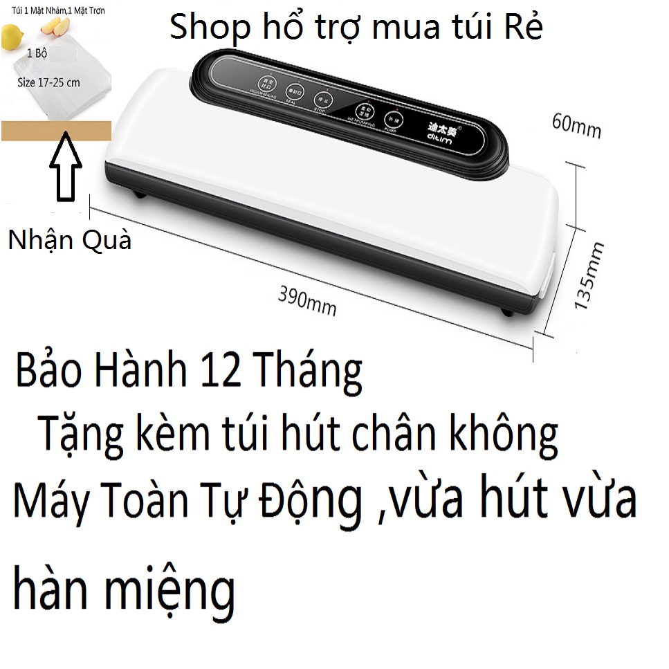 Nhà cửa & Đời sống > Dụng cụ nhà bếp > Dụng cụ hút chân không || Máy hút chân không thực phẩm mini cao cấp DTM-600-bảo hành 12 tháng-tặng 10 túi hút 1 mặt nhám 17-25cmCòn hàng
