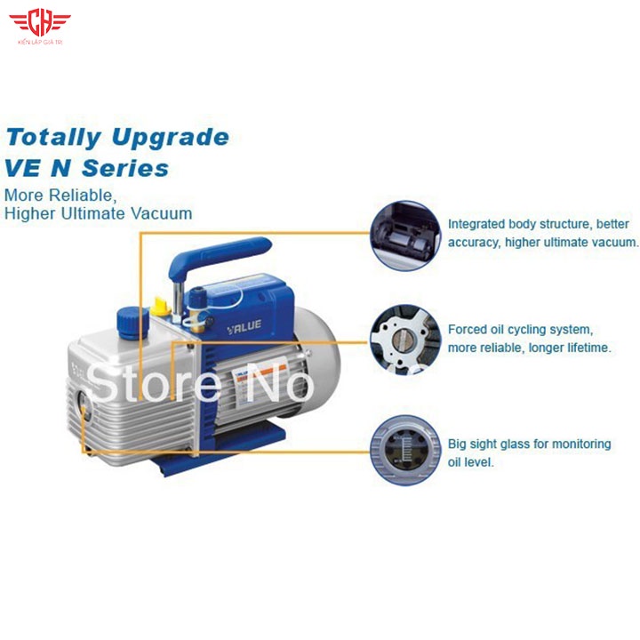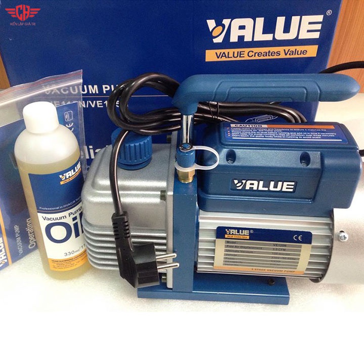 Máy hút chân không Value 1,5 CFM Model: VH115N Thông số kỹ thuật - Lưu lượng bơm: 41-47 lít/phút - Chân không tuyệt đối (độ hút chân không): 150 Micron - Công suất: 1/4 Mã lực - Dung tích dầu: 250 ml - Điện áp: 110-220V/50-60Hz, Chế độ chuyển đổi nguồn điện - Kích thước: 290x124x224 mm - Khối lượng: 4,5 kg Dụng cụ.máy hút chân không value 2.0 CFM Model: VE115N Thông số kỹ thuật - Lưu lượng bơm: 51-57 lít/phút - Chân không tuyệt đối (độ hút chân không): 150 Micron - Công suất: 1/4 Mã lực - Dung tích dầu: 250 ml - Điện áp: 110-220V/50-60Hz, Chế độ chuyển đổi nguồn điện - Kích thước: 290x124x224 mm - Khối lượng: 6.6 kg Dụng cụ, thiết bị HVAC cao cấp Value được sản xuất 100% trên dây chuyền công nghệ Châu Âu và Nhật Bản