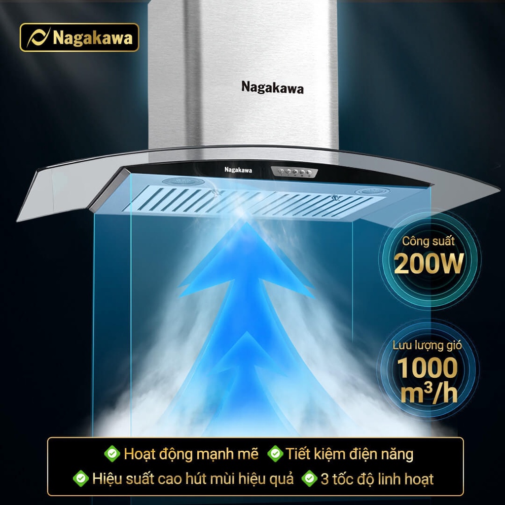 Giới thiệu Máy Hút Mùi Than Hoạt Tính Cỡ Lớn Nagakawa NAG1857-70Cm