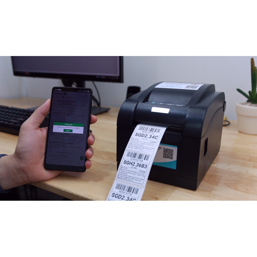 Máy in dPos Xprinter XP350BM LAN in đơn hàng GHTK bằng điện thoại in tem nhãn Minicode
