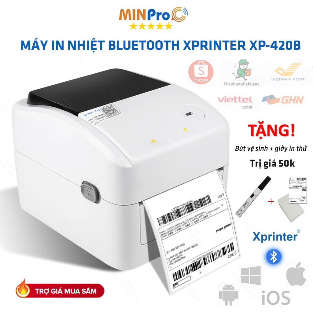 Máy in nhiệt bluetooth XPRINTER XP-420B, in đơn hàng shopee, tem, hóa đơn, mã vạch - MINPRO