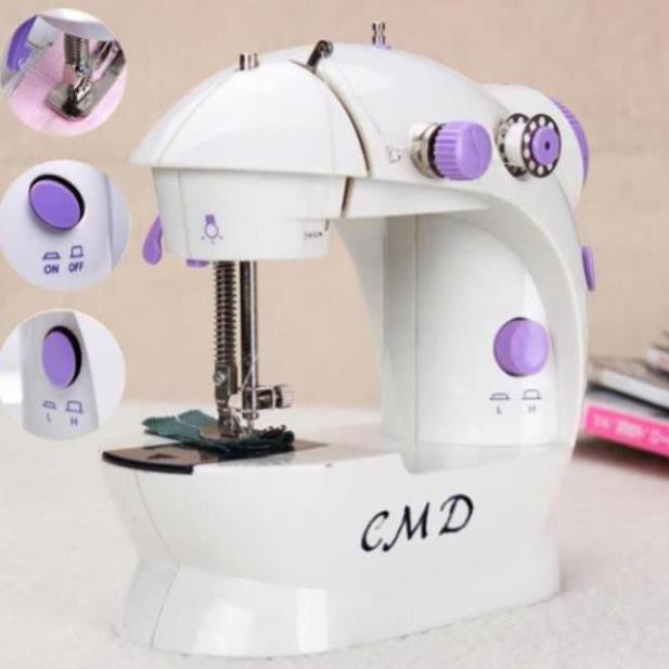 Máy khâu vá mini CMD loại tốt ăn chỉ 100% 2 chế độ NHANH-CHẬM có đèn LED/Tặng kèm 4 suốt chỉ