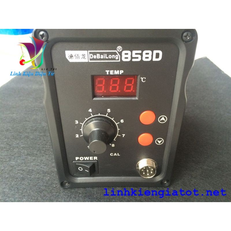 DBL 858D danh sách đóng gói tiêu chuẩn:Bộ khò 858D bao gồm : 1 bộ ● trạm xử lý : 1 ● Dây điện cấp nguồn: 1 ● sách hướng dẫn: ● 1 tay khò đặc biệt: 3 đầu khò (3mm / 3mm / 8mm)