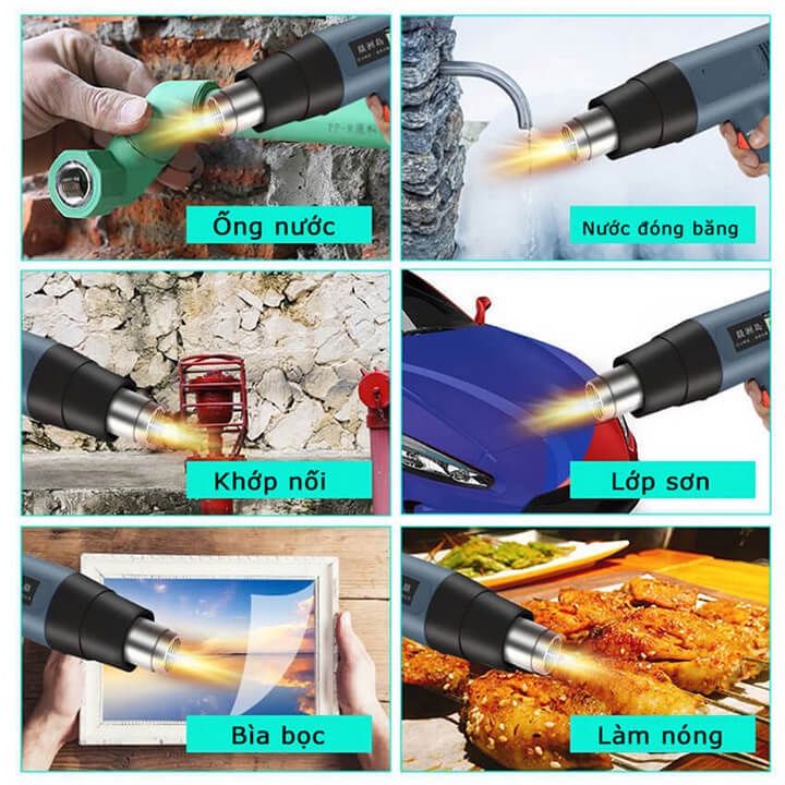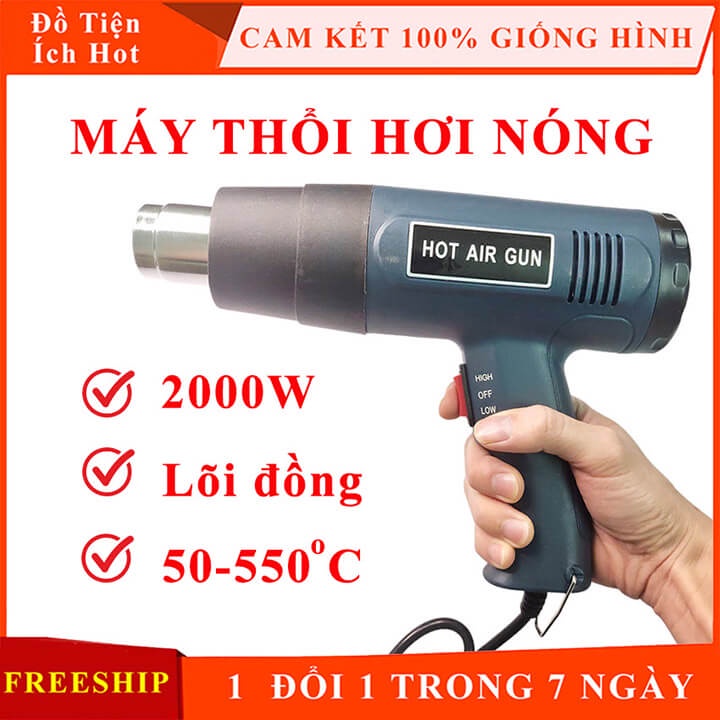 Máy khò hơi nóng 2000W HOT AIR GUN, khò nhiệt màng co bọc giỏ quà, dán decal, đóng seal điện thoạiMáy khò hơi nóng chính hãng