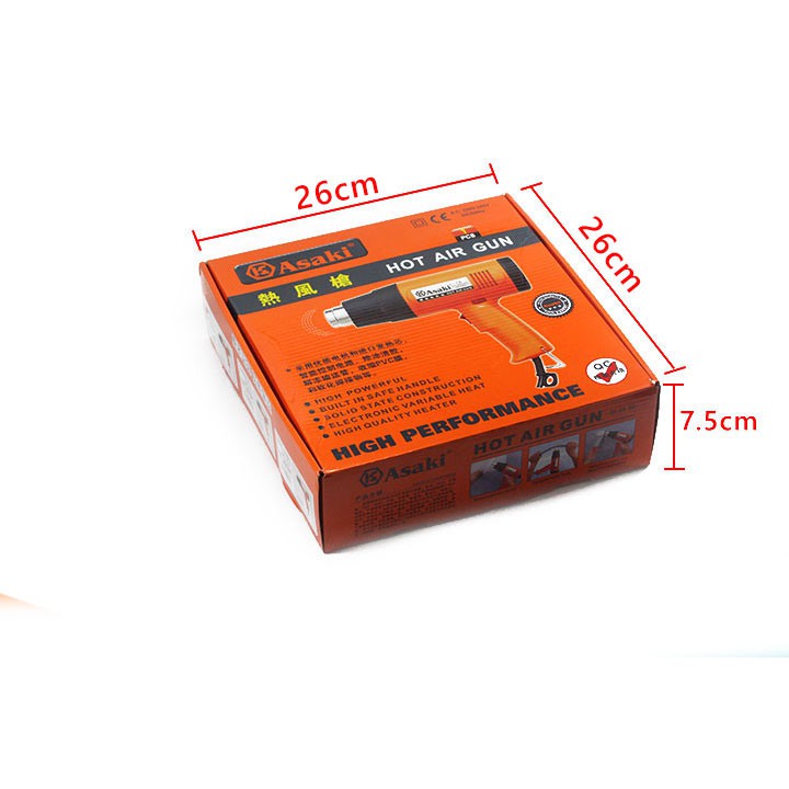 - Máy Khò Hơi Nóng Asaki phù hợp sử dụng cho thợ sửa chữa điện tử, điện thoại, dán màn hình, đóng gói sản phẩm, sấy khô, sấy nóng…. có thể sử dụng để hàn ghép các loại ống nhựa PVC, vải tổng hợp, làm khô keo, khô sơn... Máy khò Asaki có công suất cho bạn lựa chọn là 1600W với công suất cao cho thời gian ra nhiệt nhanh, máy còn có 2 chế độ HIGH và LOW giúp bạn dễ dàng điều chỉnh nhiệt độ để sử dụng.