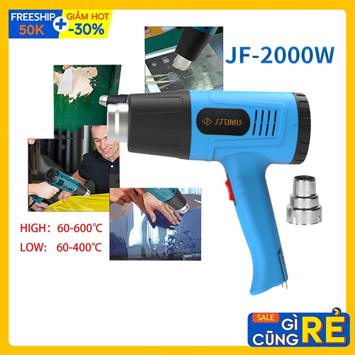 Thân máy làm bằng nhựa ABS cao cấp không lo nhiệt độ ảnh hưởng. Với công suất 2000W máy thổi nhiệt JFTOOIS tạo ra luồng gió mạnh hơn hẳn những sản phẩm cùng loại khác.