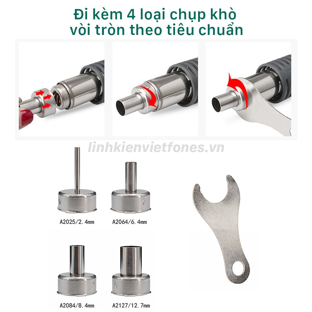 4 đầu gắn khò với 4 kích thước thích hợp tùy nhu cầu