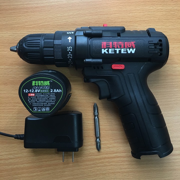 + MÁY KHOAN PIN 12V KETEW MÀU ĐEN - 2 TỐC ĐỘ - 2 PIN - có báo pin
