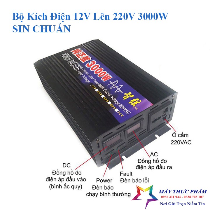 - Máy Thực Phẩm xin giới thiệu sản phẩm Bộ kích điện sin chuẩn 12V - 220V - 3000W BB chức năng dùng đổi nguồn từ bình ắc quy 12V sang 220V sử dụng cho các thiết bị điện trong gia đình.THÔNG TIN SẢN PHẨM