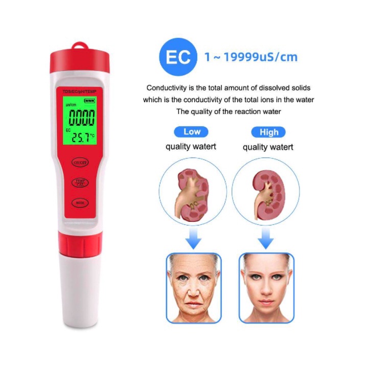 - Phạm vi đo: pH:0.00-14.00ph; TDS: 0-19990ppm; EC: 0-19990μm/cm