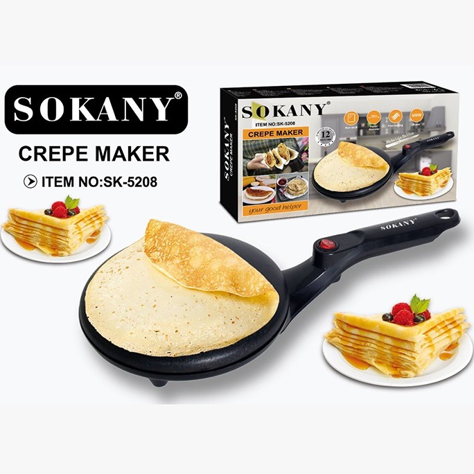Máy làm bánh crepe Sokany model mới nhất hiện tại của hãng, chảo có độ chống dính tốt. Mỗi máy đi kè 1 tô đựng bột.