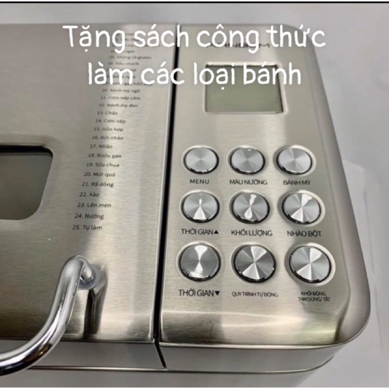 Shop tặng sách công thức làm bánhMáy làm bánh mì đa năng, nhồi, ủ , nướng bánh trên cùng một thân máy ranbem 135g