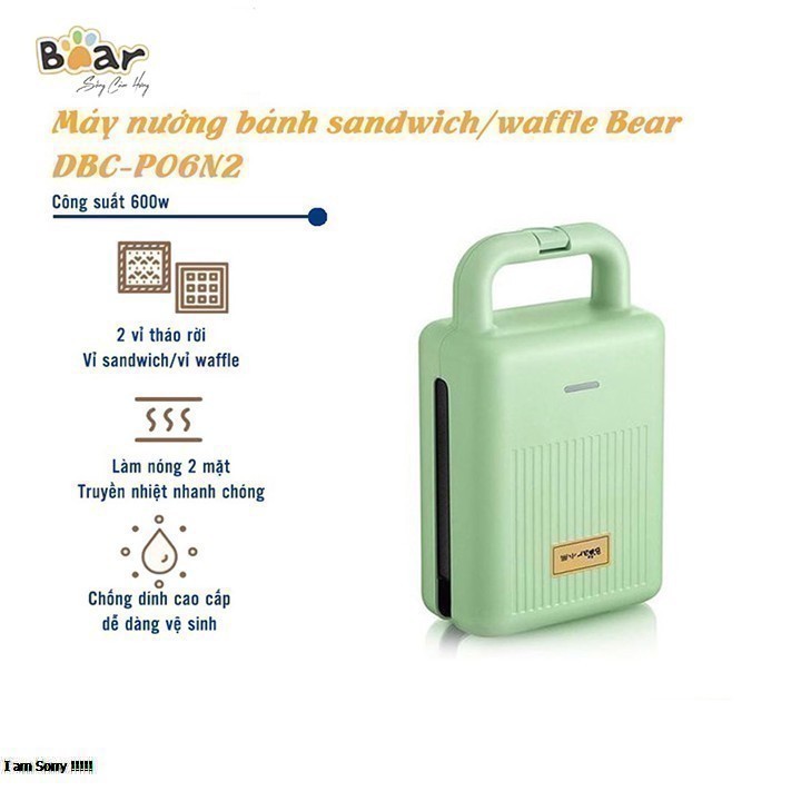 - Máy kẹp nướng bánh Bear có 2 loại vị thay thế: vỉ sandwich & vỉ wafle