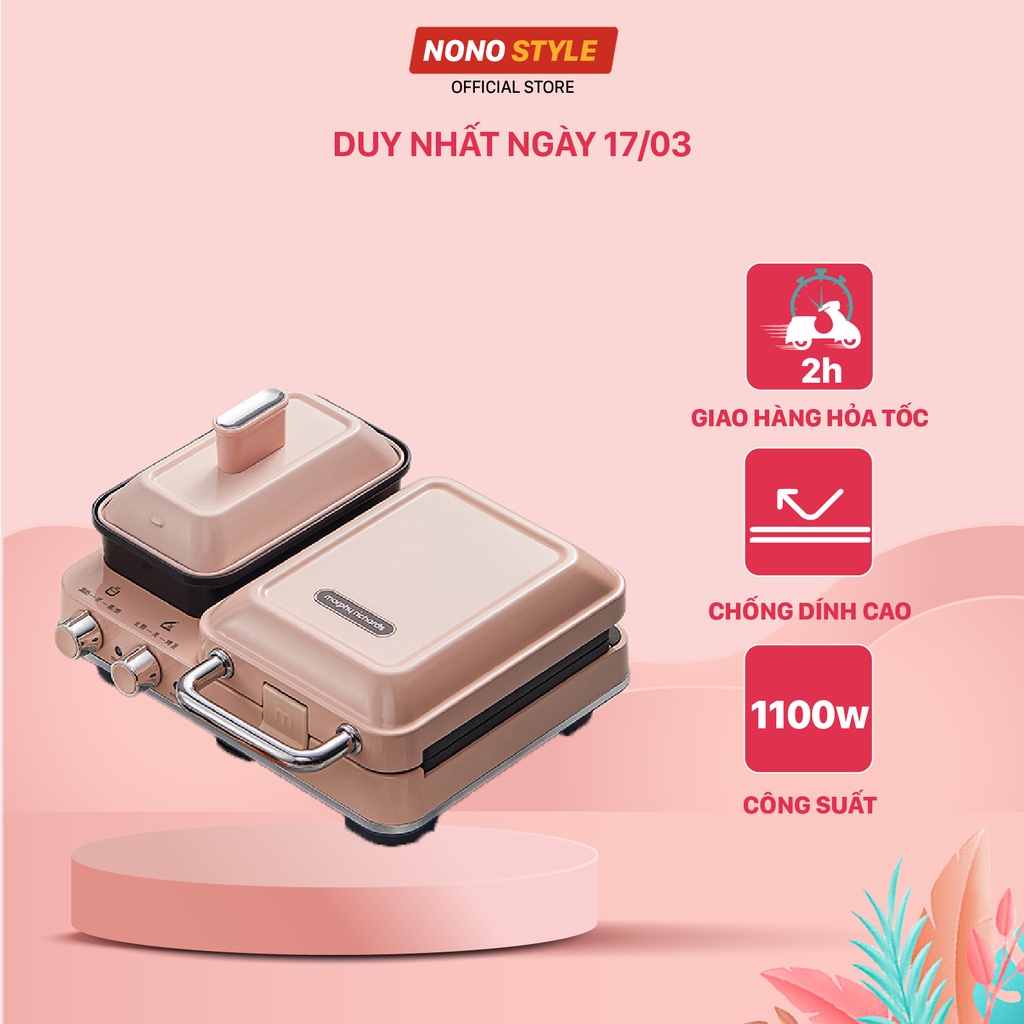 - 2 chức năng: Nướng bánh và nấu đồ ăn nhanh chóng. Bạn chỉ cần một khoảng thời gian từ 5 – 7 phút để có thể hoàn thành 1 chiếc bánh sandwhich nướng xinh xắn, thơm lừng