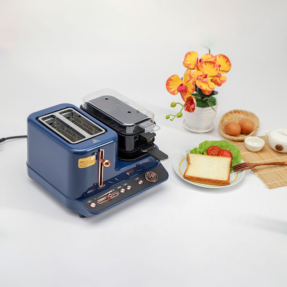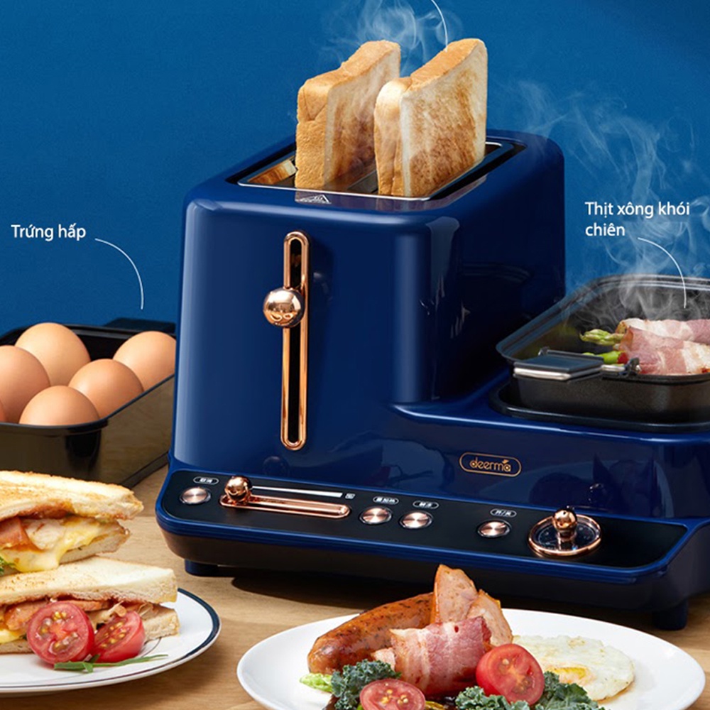 Ngoài ra, chiếc máy là sự kết hợp giữa các chức năng nướng bánh mỳ, đi kèm chảo rán, vỉ hấp cung cấp cho bạn một bữa sáng đủ chất và nhanh gọn nhất. Kết cấu đa năng này không chỉ giúp tiết kiệm tối đa thời gian làm bữa sáng cho những người nội trợ bận rộn mà còn đáp ứng đầy đủ nhu cầu chế biến bữa sáng từ món Tây đến món Á,...đa dạng bữa ăn cho cả gia đình.