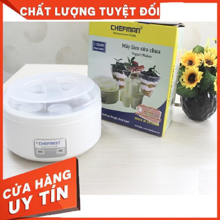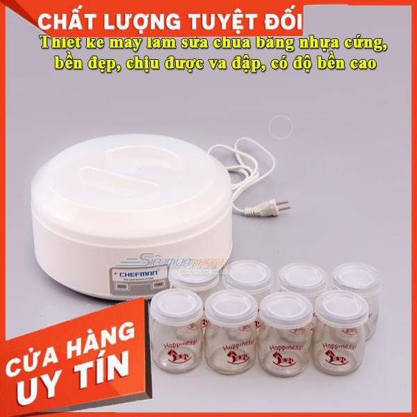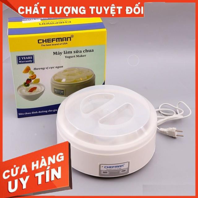 - Máy làm sữa chua Chefman CM-301 có dung tích 1,6 lít có thể chứa được 8 cốc sữa chua giúp làm được nhiều sữa chua hơn cho cả gia đình thưởng thức. Máy làm sữa chua được sản xuất tại Việt Nam với dây chuyền và công nghệ được nhập khẩu từ Mỹ nên bạn tuyệt đối yên tâm về chất lượng của sản phẩm. Hệ thống dây điện được bao bọc chắc chắn không gây rò rỉ điện khi sử dụng.
