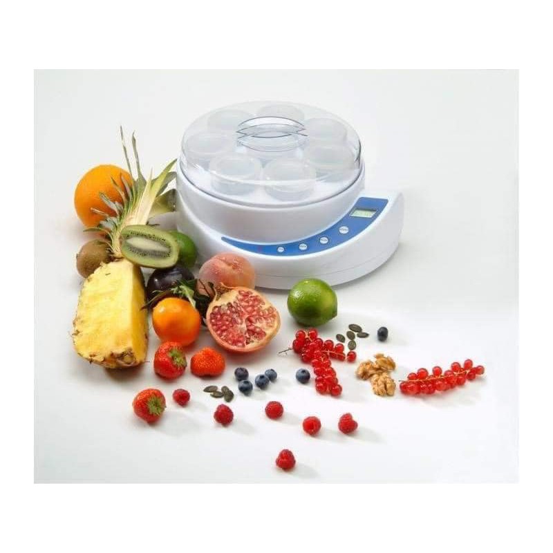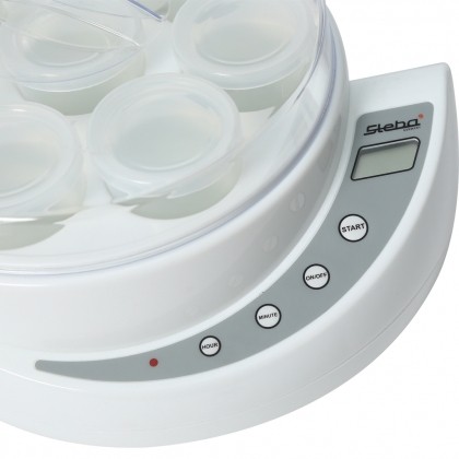 - Thân máy bằng nhựa nguyên sinh được bao quanh bởi thép không gỉ bền chắc, các tính năng hiện đại (hẹn giờ, bảo vệ quá nhiệt). Máy làm sữa chua Steba khắc phục hoàn toàn được điểm bất tiện: phải tự canh thời gian để tắt máy và nhiệt độ nuôi cấy vi khuẩn đôi khi quá cao, với thời gian hẹn giờ từ 1-17 tiếng.