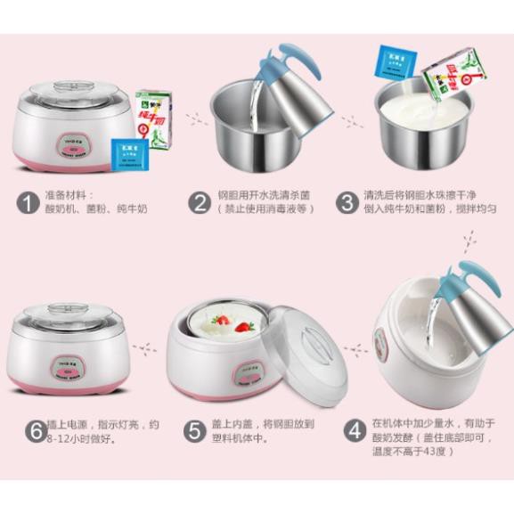 Máy làm sữa chua tự động đa chức năng, sử dụng thép không gỉ INOX 304, dung tích 1.0 lít