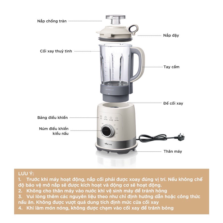 Máy xay làm sữa hạt sinh tố đa năng BEAR PBJ-B10U5 công suất 1000W 1.5L 8 chế độ✅THÔNG TIN SẢN PHẨM: