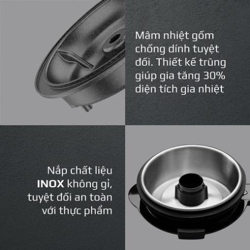 • Tác dụng của mâm nhiệt gốm là chống dính cực tốt ngay cả khi tăng nhiệt độ cao. Giúp món ăn không bị khê, cháy, dính vào mâm nhiệt, không còn hiện tượng mâm nhiệt bị biến màu oxy hóa như những dòng thông thường khác.