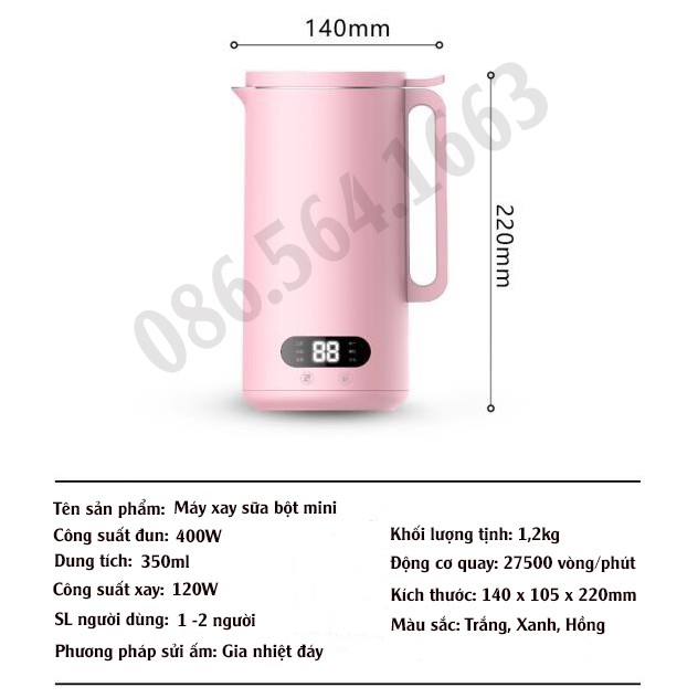 Máy Làm Sữa Hạt Mini - Máy Xay Nấu Đa Năng BROWTON - Máy Xay Ngũ Cốc, Làm Sữa Hạt Đậu Nành 350ML - BH 6 Tháng