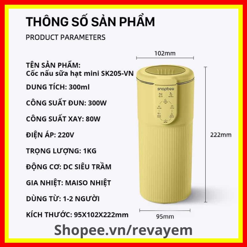 THÔNG SỐ MÁY LÀM SỮA HẠT SNAPBEE – MÁY LÀM SỮA HẠT MINI SNAPBEE