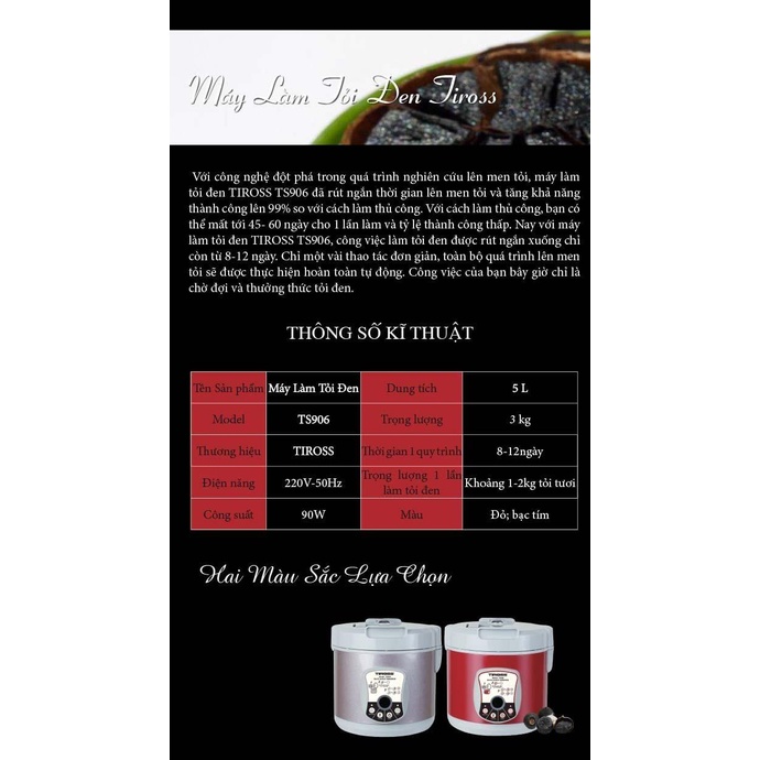 Máy Làm Tỏi Đen Tiross TS906 2Máy Làm Tỏi Đen Tiross TS906 3Hướng dẫn cách làm tỏi đen